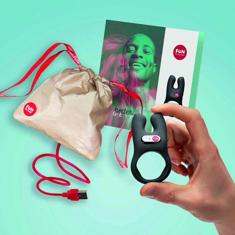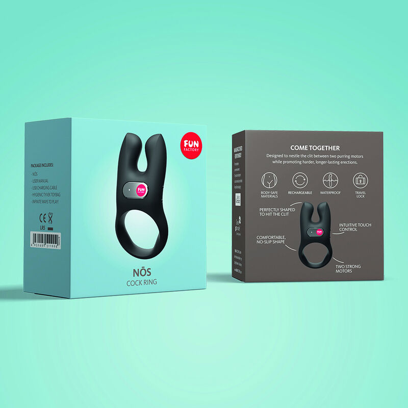 On most vibrating cock rings, the vibrator sits right on top of the penis fun for the wearer, but not really useful if youre trying to hit the clit. We designed NOS with both of you in mind, so the two vibrating extensions are long enough to actually reach your clit and flexible enough to move with you while you play. That means hands-free orgasms during intercourse! Read on for what makes the shape of the ring special…