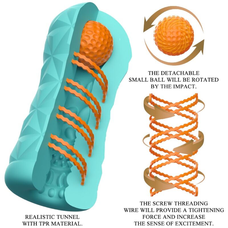 Little tool for gigantic masturbation fun! This transparent and reusable masturbator has a rotating spiral and a stimulation ball on the side, the rotating spiral makes the masturbator rotate during penetration and the ball on the top can stimulate the right spot and give you a new sensation. The sheath has a stimulating and exciting texture inside that massages the penis intensely and dynamically during manual work. You can use this stylish skin-friendly masturbator over and over again. Very easy to use and pure pleasure!
