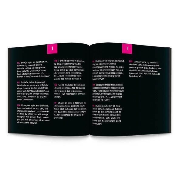 The 24 challenges of the Love & Marriage edition are available in 10 languages: English, Spanish, French, German, Dutch, Polish, Russian, Italian, Swedish and Norwegian, and will add an exciting twist to your sex life for (even) more passionate . Pleasure. Are you naughty enough to take the plunge? Experience your loving and erotic moments together.