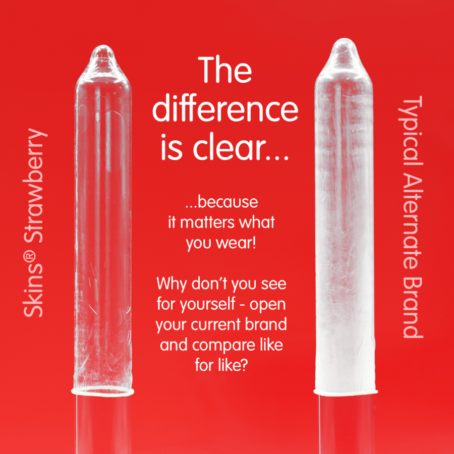 Introducing our new Strawberry 4-pack, featuring a sleek, ready-to-use design and up to 33% more condoms than the market leader. Add a classic fruity flavor to your product range with Skins Strawberry condoms. Made with premium natural latex for a sheer, natural feel, these condoms are designed to provide a second-skin feel without compromising strength or safety. Ideal for retailers looking to offer a popular and trusted flavor option for added intimacy and protection.